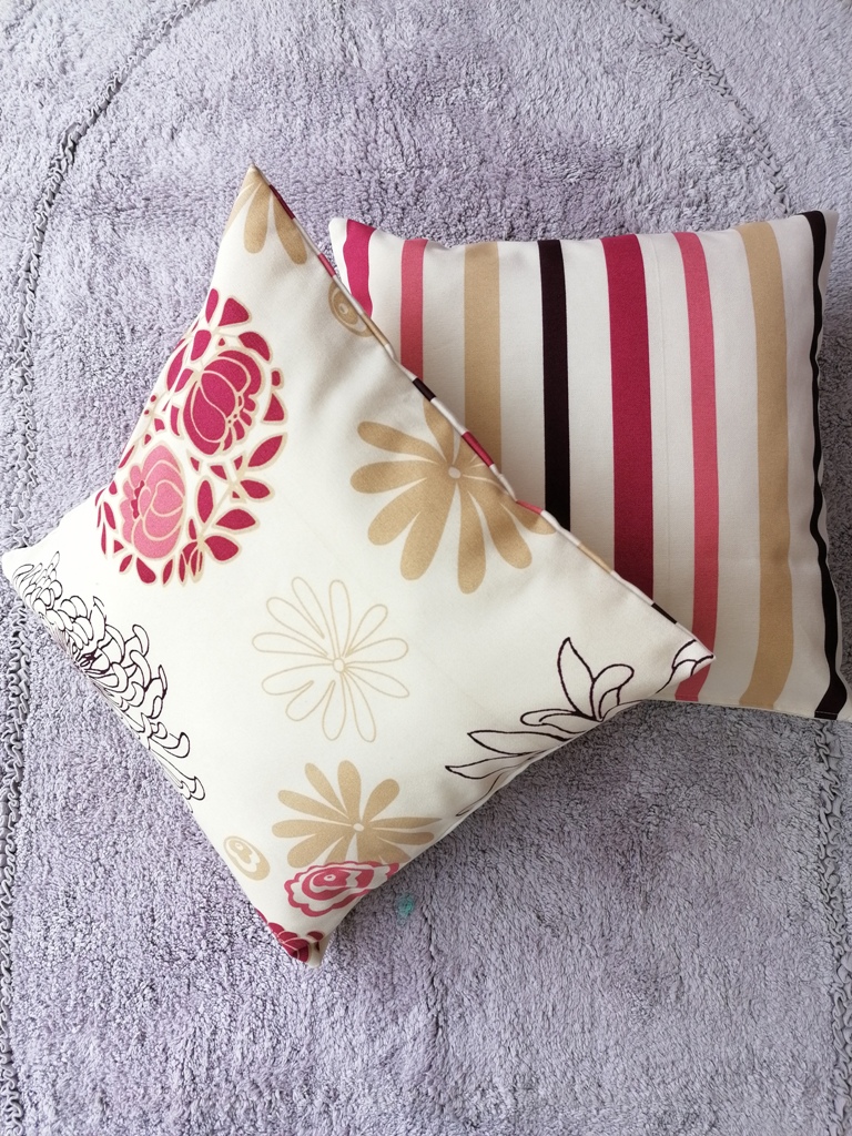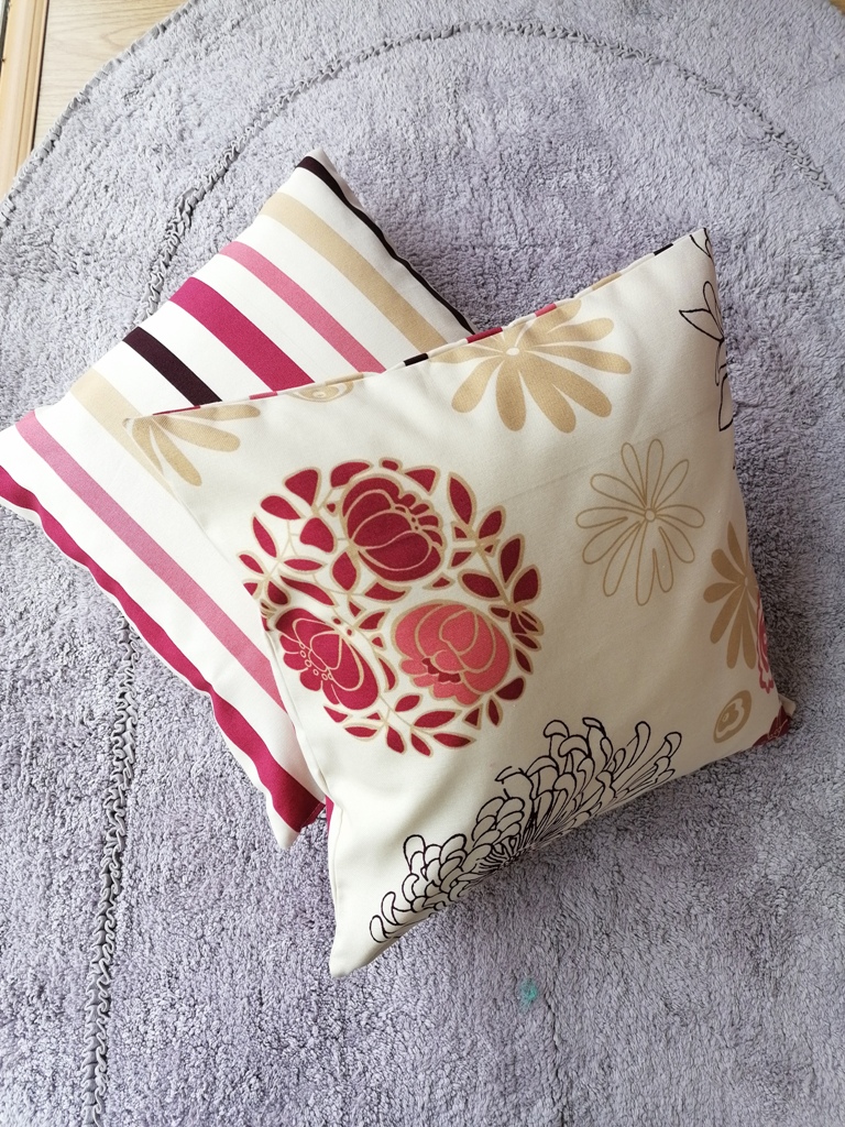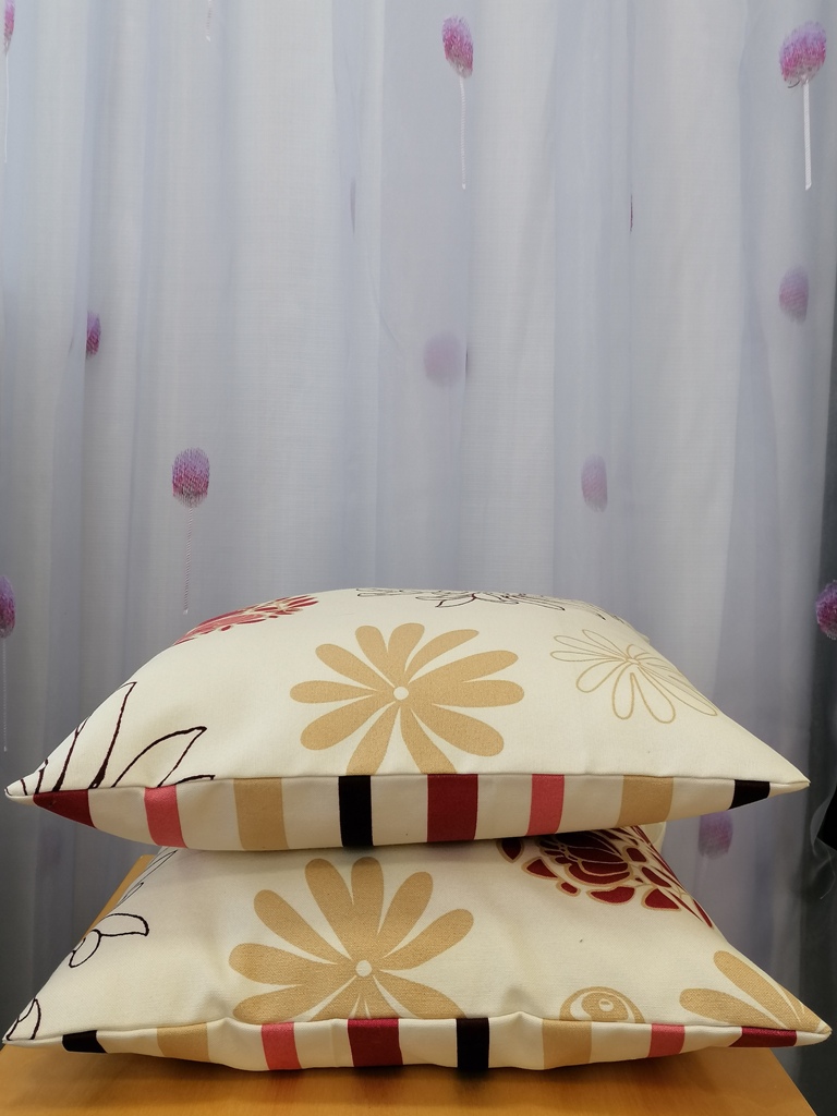 Υπέροχες μαξιλαροθήκες διακοσμητικές, διπλής όψεως , η μία ριγέ και η άλλη φλοράλ σε μπεζ – φούξια αποχρώσεις. Το ύφασμα είναι βαμβακερό και φυσικά μπορεί να χρησιμοποιηθεί και για εξωτερικό χώρο. Μια ανάλαφρη πινελιά στον χώρο σας.